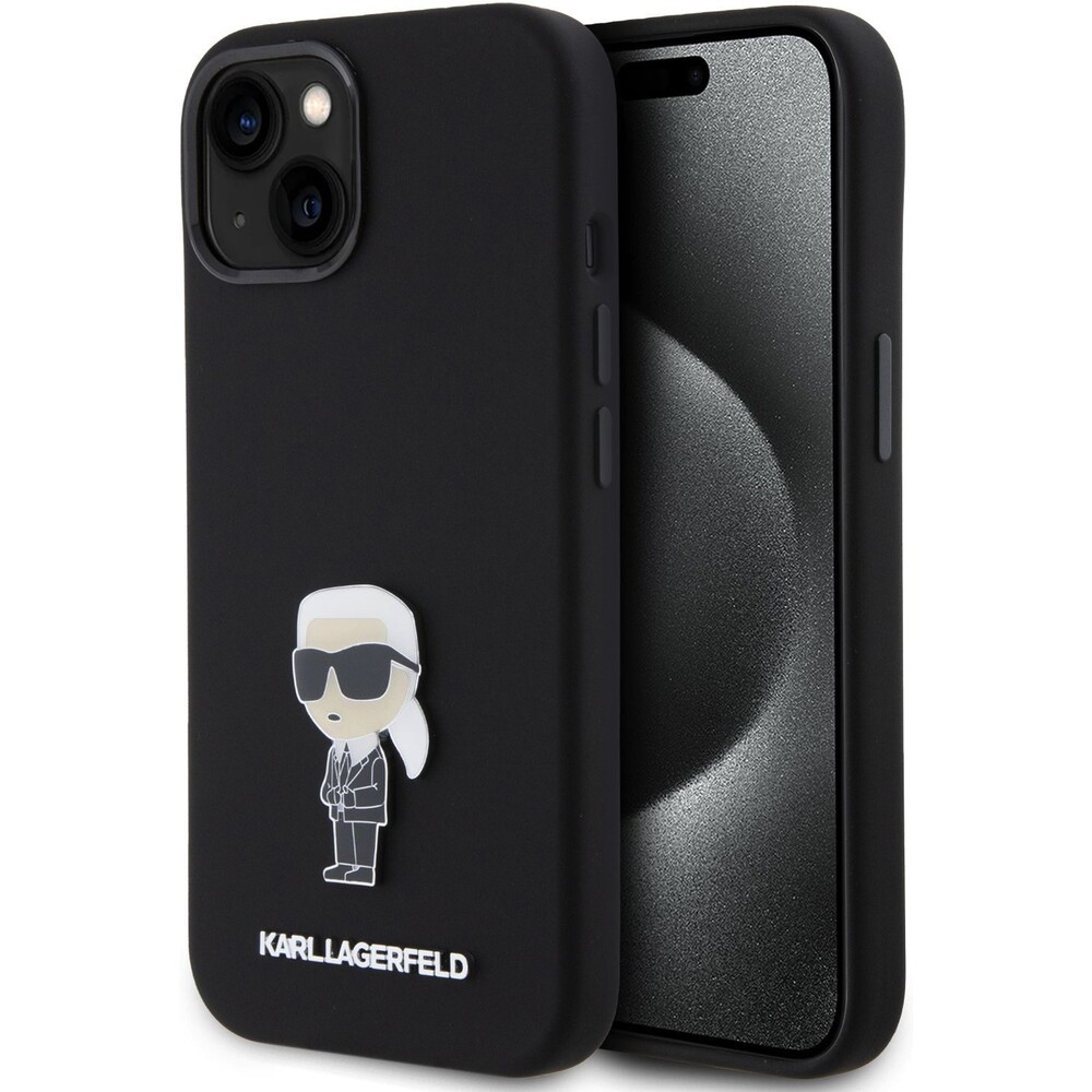 Karl Lagerfeld Liquid Silicone Metal Ikonik Kryt iPhone 15 černý