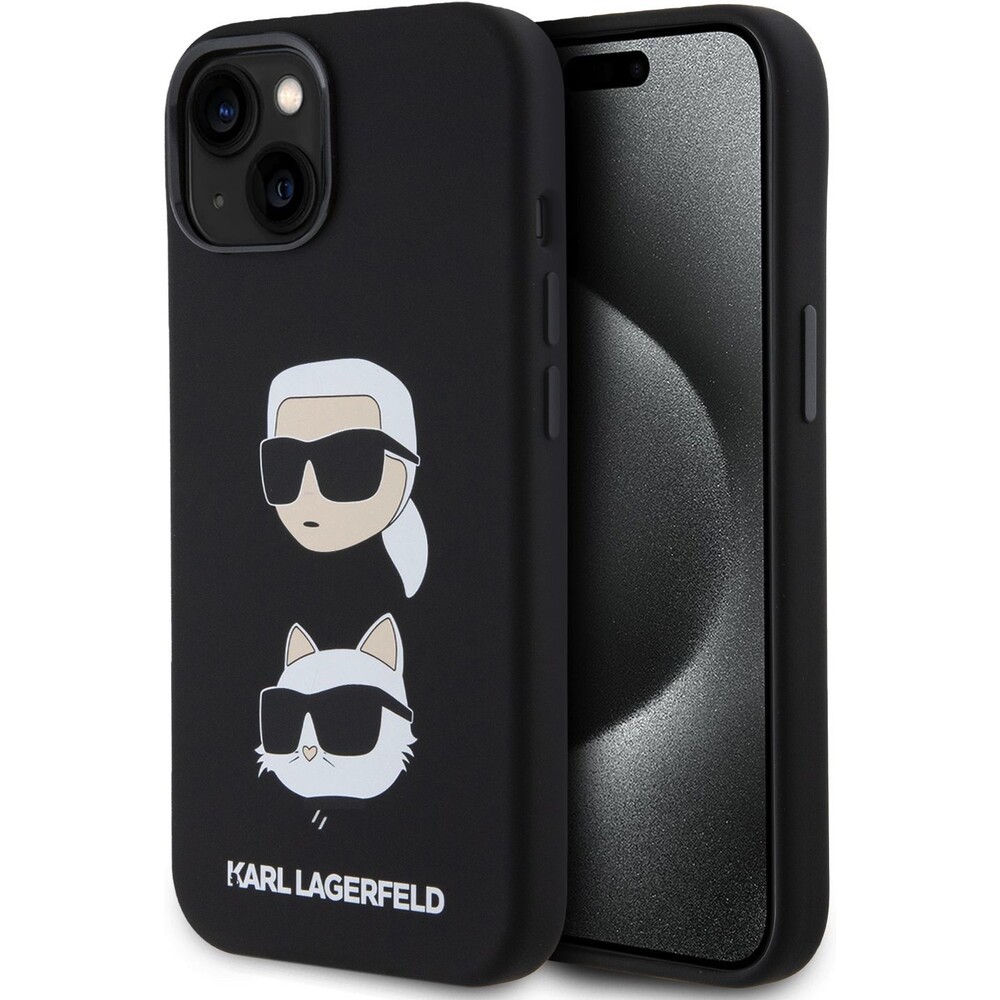 Karl Lagerfeld Liquid Silicone Karl and Choupette Heads Kryt iPhone 15 černý