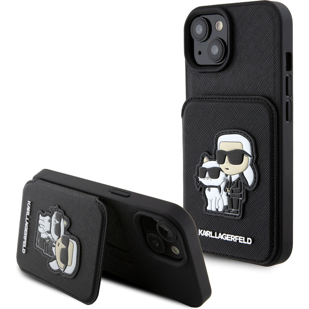 Karl Lagerfeld PU Saffiano Card Slot Stand Karl and Choupette Kryt iPhone 15 černý
