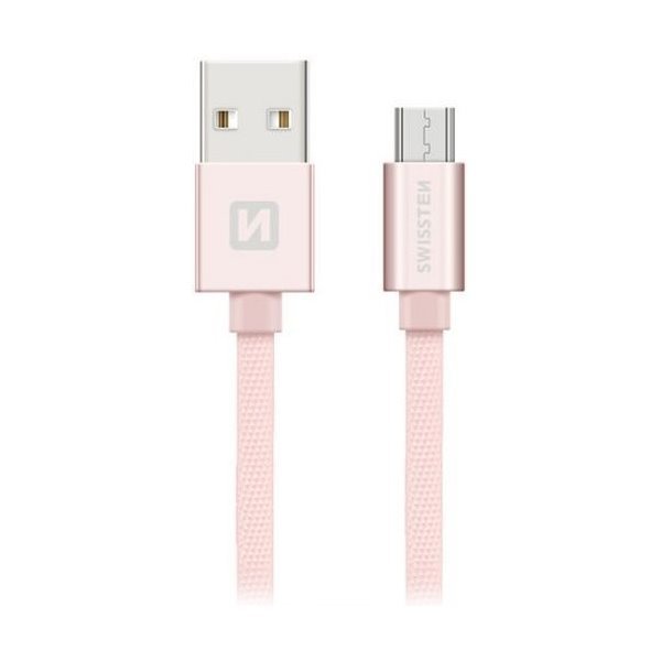 Swissten Datový Kabel Textile Usb / Micro Usb 1,2 M Růžovo/Zlatý