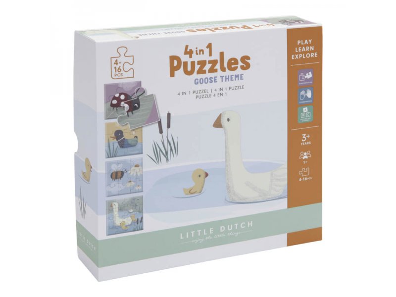 Seznamte se s roztomilou husičkou a zkoumejte spolu s vaším dítětem tvary, barvy i zvířátka. Sada obsahuje 4 varianty puzzle skládaček pro nejmenší s krásnými ilustracemi ze života husičky a jejích přátel. Jednotlivé skládačky mají od 4 do 16 dílků z pevného kartonu, které jsou dokonale tvarované...