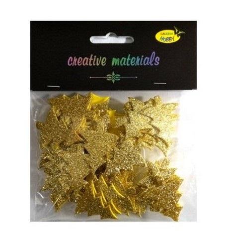 Zestaw elementów w formie choinek z pianki brokatowej wielkości 40 mm , zawierający ok. 60 elementów, pakowany w eleganckie opakowanie z eurozawieszką. Elementy można naklejać na każdą powierzchnię lub używać do innych zdobień. Opakowanie zawiera elementy w kolorze złotym. przeczytaj całość