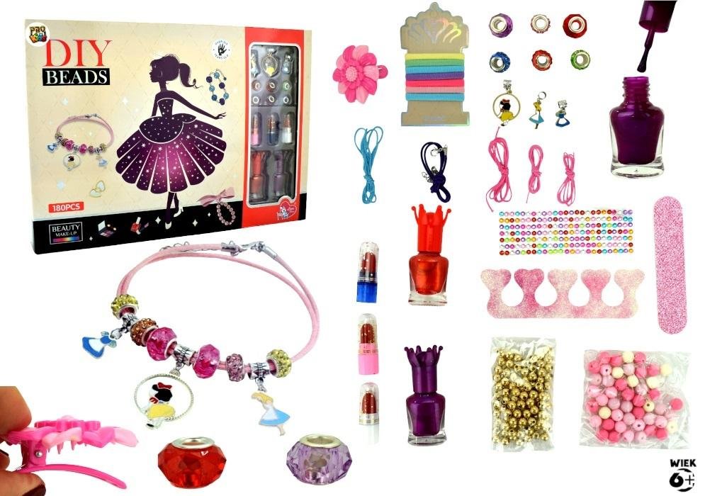 Miks wzorów, towar wysyłany losowo. Cena za sztukę.Zestaw "Akademia Mody Księżniczki" to kreatywny pakiet dla dzieci powyżej 6 roku życia, który pozwala na tworzenie własnej biżuterii oraz eksperymentowanie z makijażem. Zawiera 180 części, w tym różnokolorowe koraliki, elastyczne sznurki i...