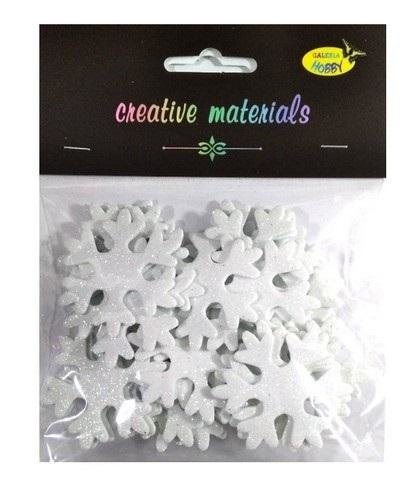 Zestaw elementów w formie śnieżynek z pianki brokatowej wielkości 50 mm , zawierający ok. 30 elementów, pakowany w eleganckie opakowanie z eurozawieszką. Elementy można naklejać na każdą powierzchnię lub używać do innych zdobień.Opakowanie zawiera elementy w kolorze białym. przeczytaj całość