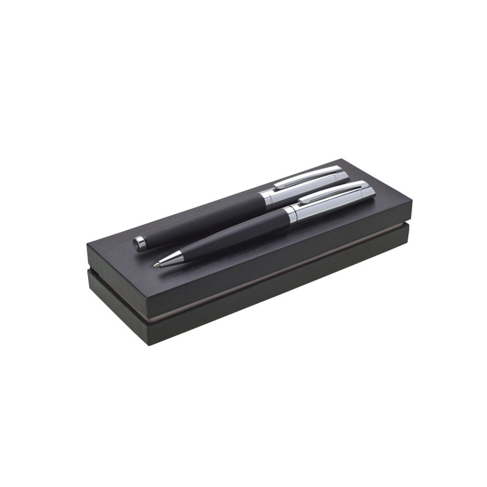 Dárková sada - kuličkové pero a roller GENERO v černo-stříbrné barvě