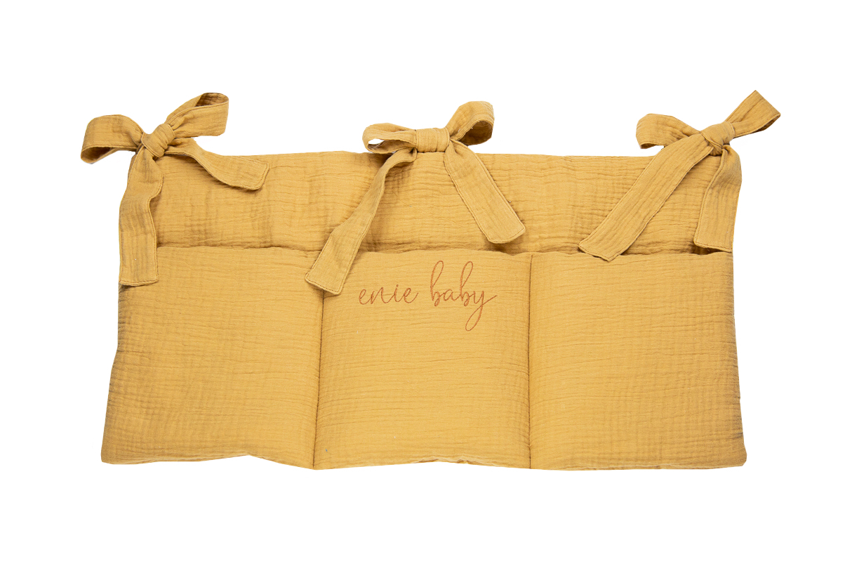 Kapsář na postýlku z mušelínu má tři prostorné úložné kapsy na ukládání hraček, deček, dudlíků a dalších nezbytností, jako jsou plenky nebo vlhčené ubrousky. Kapacita kapsy je 4- 8 plenek. Místo na vše, co chcete mít po ruce. Pomocí tří horních mašlí ho snadno zavěsíte kamkoliv. Celkové rozměry...
