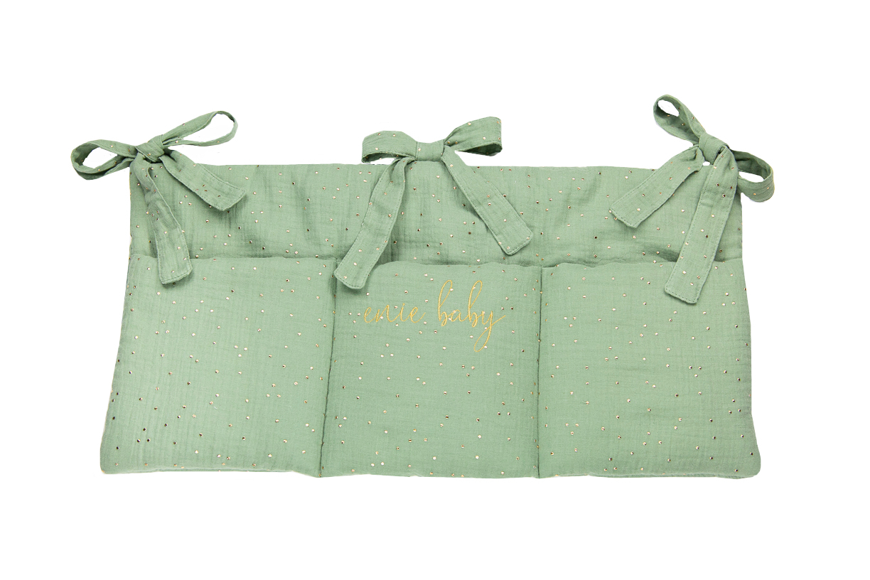 enie baby Mušelínový kapsář khaki se zlatými puntíky