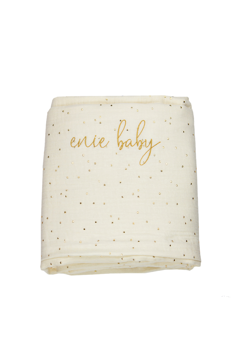 enie baby Mušelínové povlečení 100x135 a 40x60 cm béžové se zlatými puntíky