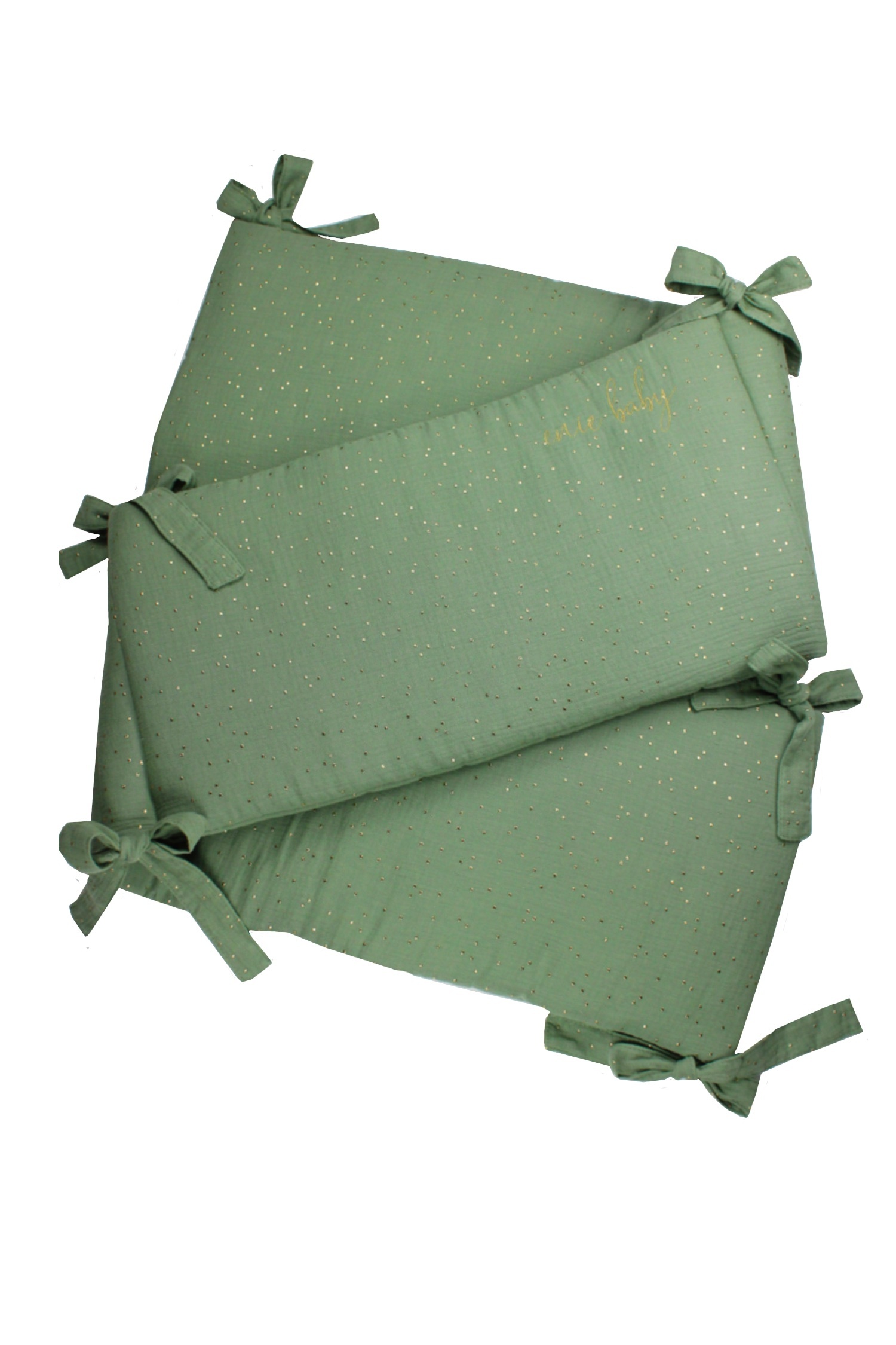 enie baby Mušelínový mantinel khaki se zlatými puntíky