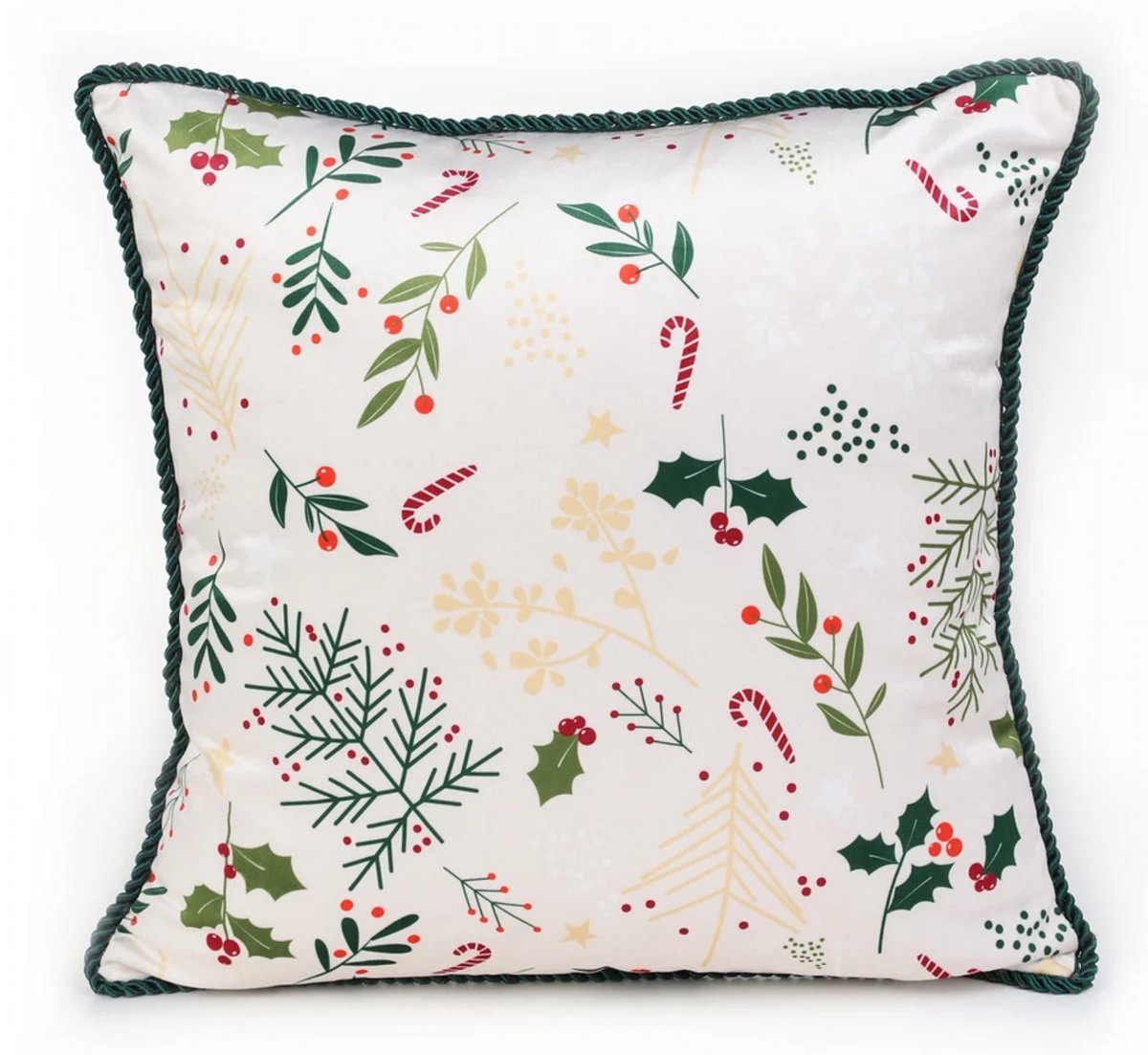 Vánoční polštář s výplní | GODIS | polštář se zeleným lemováním | 45x45 cm | 868097 Homla