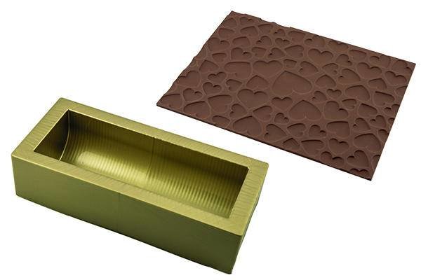 Silikonová forma na pečení chlebíčku s podložkou pro vytvoření srdíčkového vzoru. przeczytaj całość