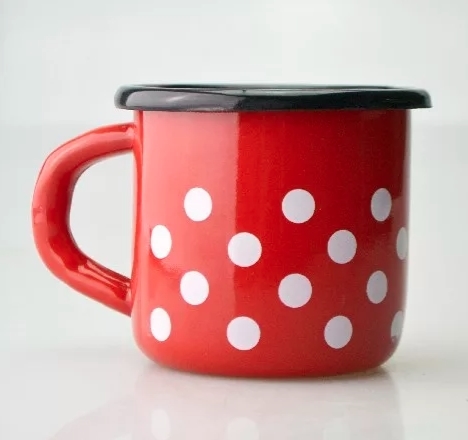 Smaltovaný hrníček objem 250 ml, průměr 7 cm Vyrobeno v EU Barva červená s bílými puntíky a černým lemem. Hrnek vhodný na pití nebo k dekoračním účelům. Drobné vady na smaltování na barevné flíčky nejsou předmětem reklamace. EAN 0000063990201 przeczytaj całość