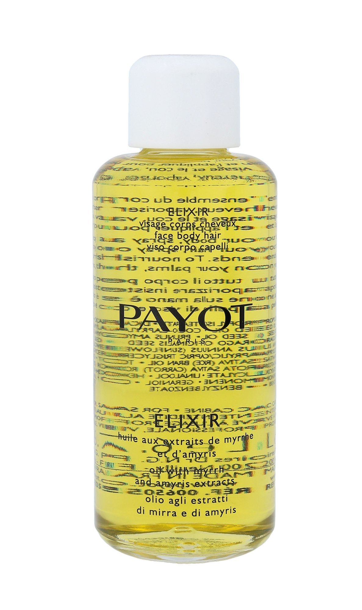 Payot Elixir Body Face Hair OilOlej s extraktem myrhy a amyris pro tělo, obličej a vlasy. Na přírodní bázi. Obnovuje a hydratuje tělo, obličej a vlasy. Obohacený s rostlinnými oleji k posílení pokožky a vlasů. Obsahuje esenciální olej z Osmanthusu k relaxaci pokožky. Dodává dlouhodobou péči proti...