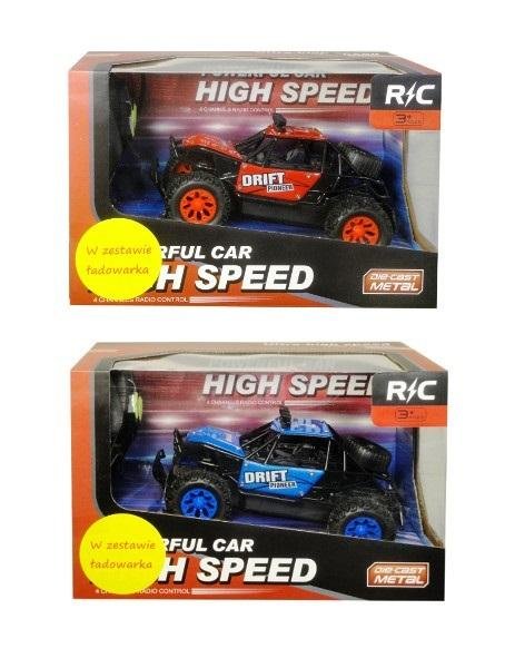 Zdalnie sterowany samochód terenowy. Porusza się we wszystkich kierunkach (skręca w prawo, w lewo, jedzie do przodu i do tyłu). Zabawka dla dzieci od 3 lat. Podane wymiary stanowią wymiar opakowania. Zabawka działa na baterie typu AA (niezałączone) oraz Ni-Cd (załączone). Zabawka zapakowana w kartonowe opakowanie z przezroczystym okienkiem.