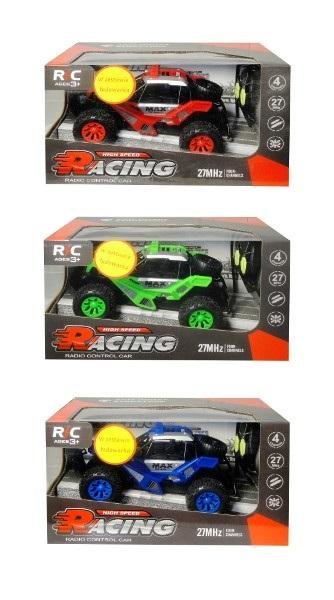 Zdalnie sterowany samochód terenowy. Porusza się we wszystkich kierunkach (skręca w prawo, w lewo, jedzie do przodu i do tyłu). Zabawka dla dzieci od 3 lat. Podane wymiary stanowią wymiar opakowania. Zabawka działa na baterie typu AA (niezałączone) oraz Ni-Cd (załączone). Zabawka zapakowana w kartonowe opakowanie z przezroczystym okienkiem.