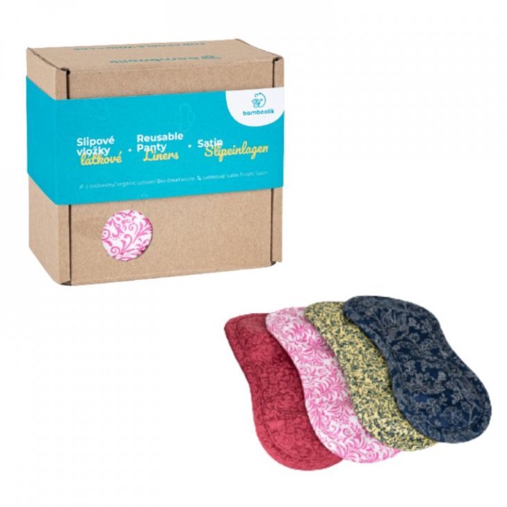 Bamboolik Výhodné sady | Slipové vložky látkové | satén & biobavlna Barva: 4 ks: Červená, Růžová, Žlutá, Tmavě modrá, Varianta: Dárkové balení (Patentek)