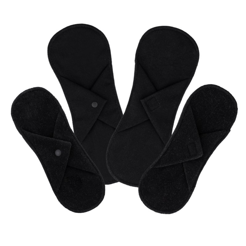 Bamboolik Sada 4 ks denních a slipových látkových vložek | biobavlněné froté Barva: Černá