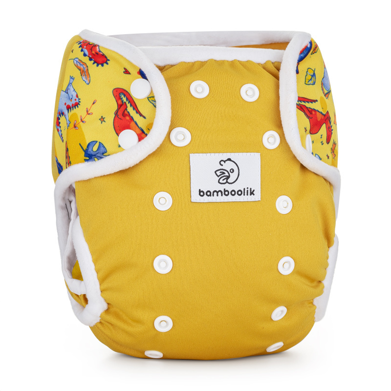 Bamboolik DUO | Svrchní kalhotky Barva: Hořčicová + Dinosauři, Zapínání: Na patentky