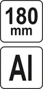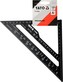 Tesařský hliníkový trojúhelník 180 mm s patkou. Je vyroben z hliníkové slitiny s lakovaným povrchem, trvale nanesená milimetrová i palcová stupnice a specializované úhlové stupnice určené pro měření prováděná při tesařských a pokrývačských pracích.