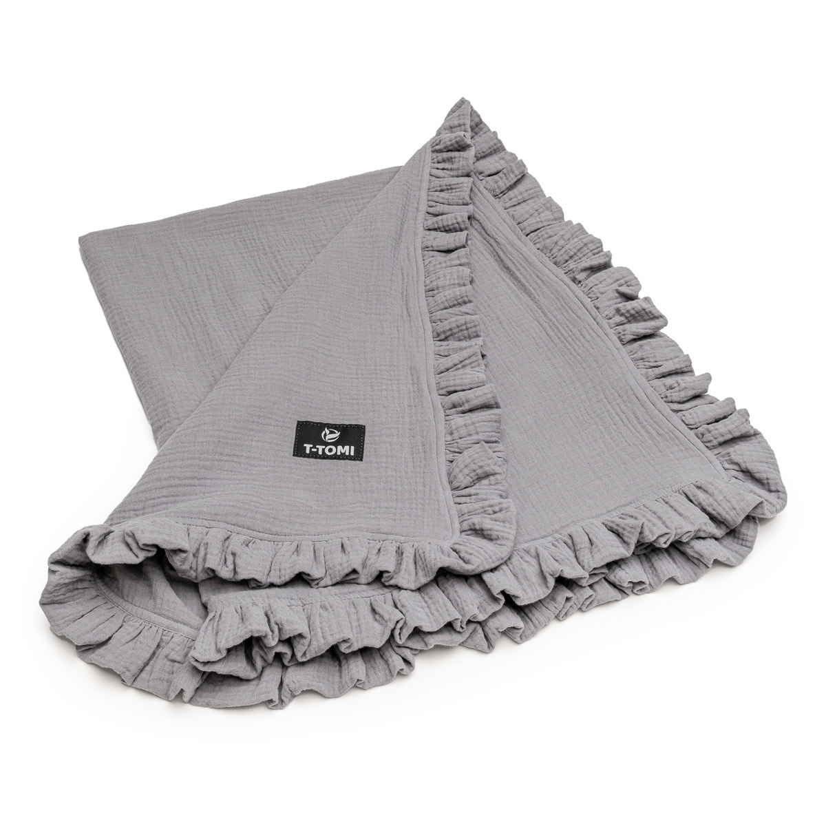 T-TOMI BIO Mušelínová deka s volánkem Grey