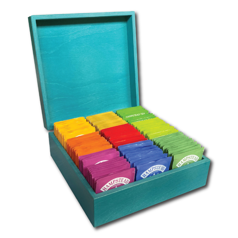 Hampstead Tea luxusní petrolejová dřevěná kazeta mix sáčkových čajů 117ks - 9 druhů