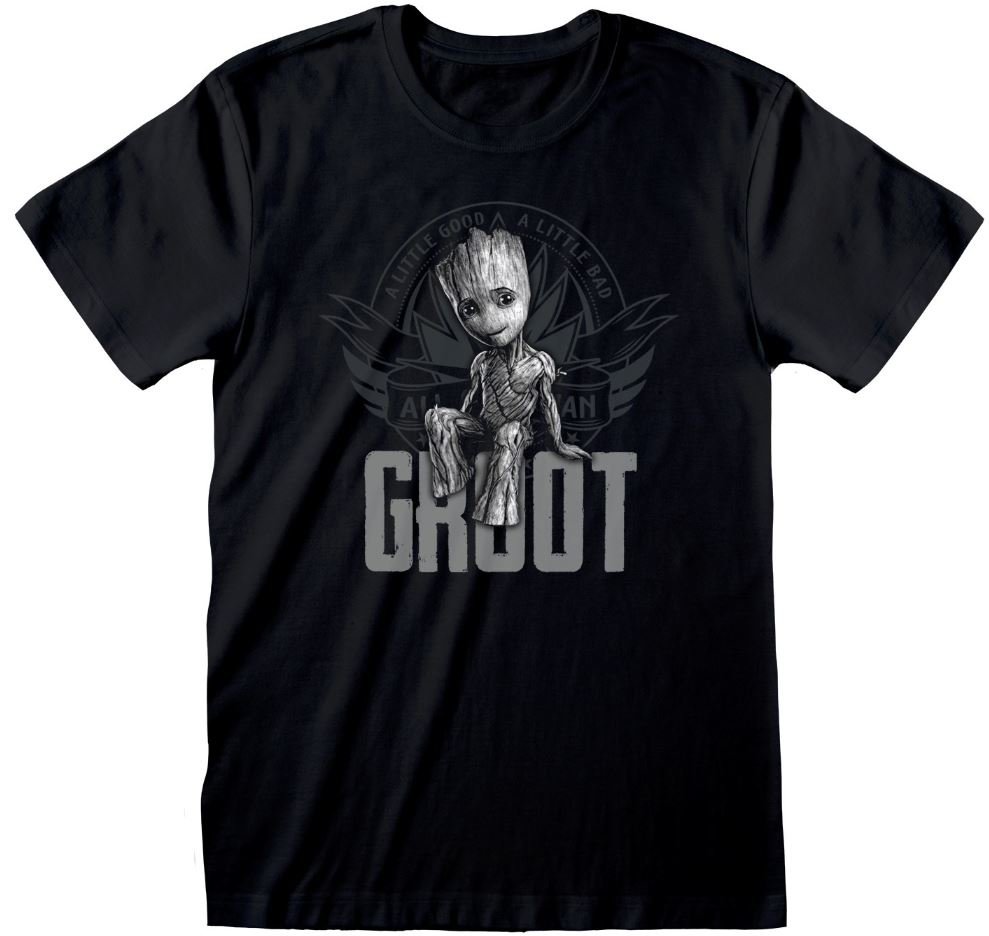 Oficiální pánské tričko z katalogu produktů s logem, obrázky a grafikou populárního amerického akčního filmu Guardians of the Galaxy (Strážci Galaxie).Zboží je legálně licencováno a prodáváno se souhlasem vlastníků licenčních práv.Atraktivní černé tričko s grafickým potiskem Groota z filmu...