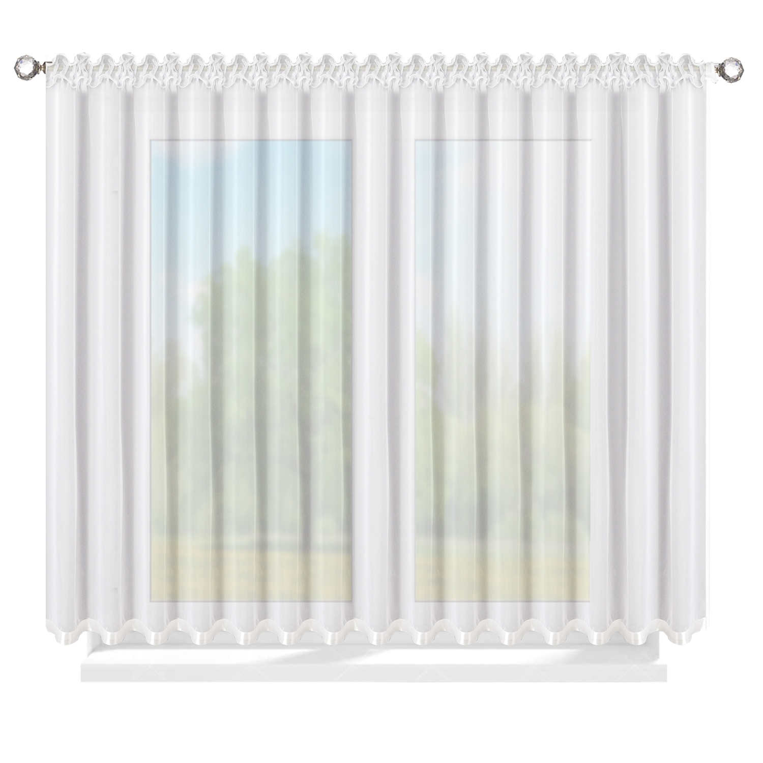 Kvalitní krátká hotová dekorační voálová záclona v rozměru 400x150 cm. Záclona má našitou řasící pásku s tunýlkem pro zavěšení na tenčí garnyž, žabky nebo háčky, má jemné lemování. Záclona je na spodní části zdobena ozdobným saténovým lemováním. 1 kus v balení.Rozměr : 1x 400x150 cm - šířka 400...