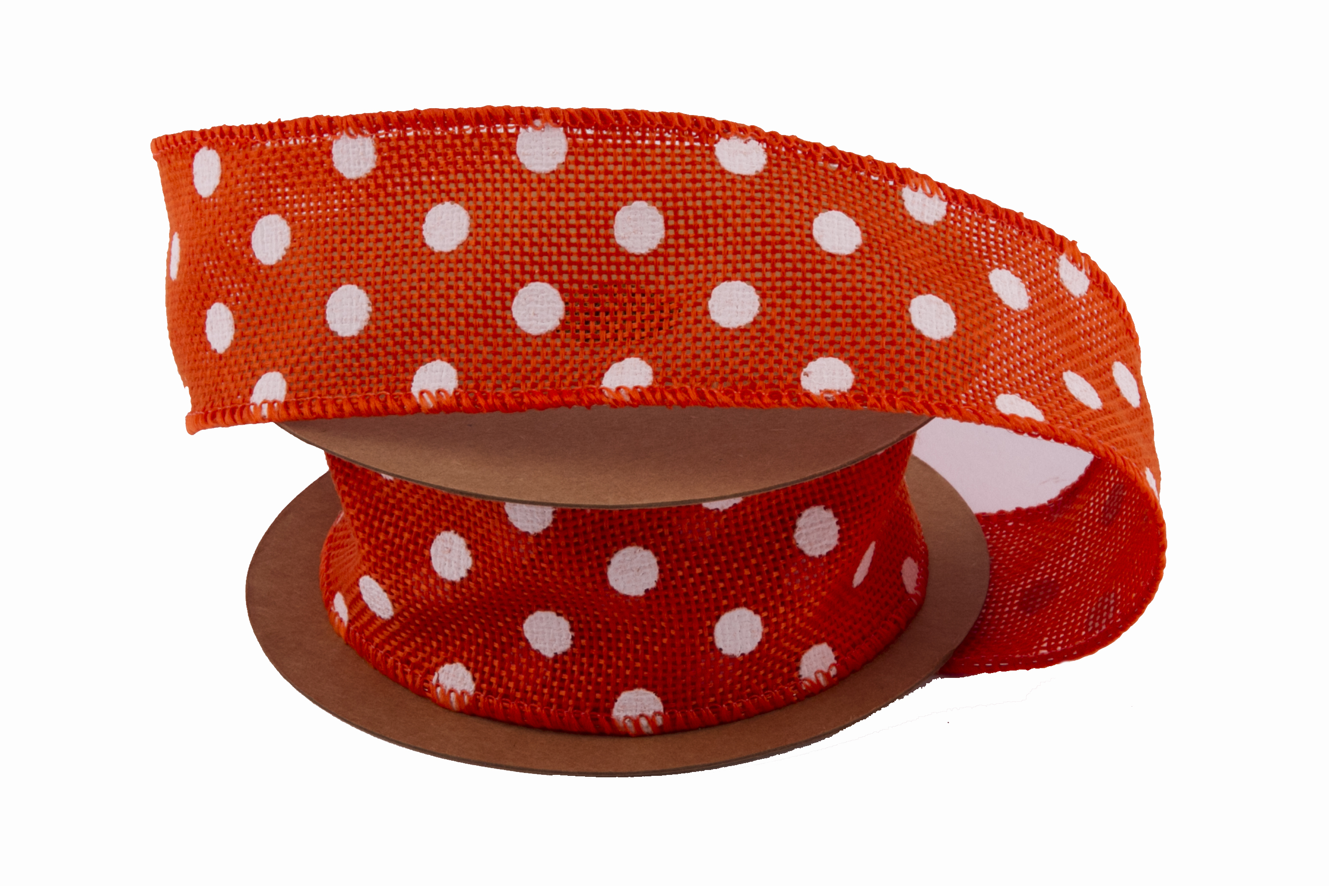 Jutová stuha s puntíkem 4cm x 6,4m 62 ORANŽOVÁ