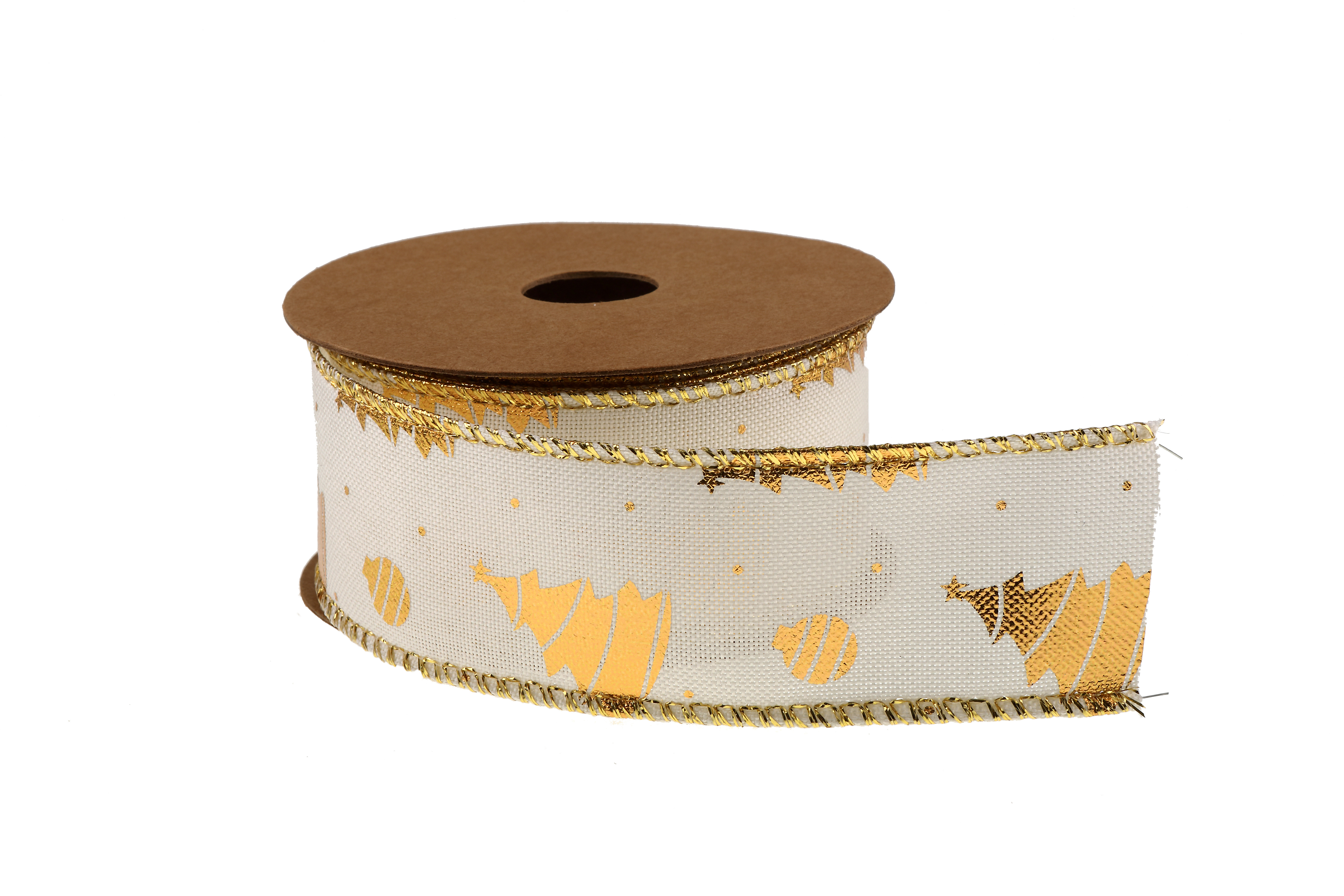 Vánoční jutová stuha 4cm x 5m AJ1739 18-smetanová/zlatá