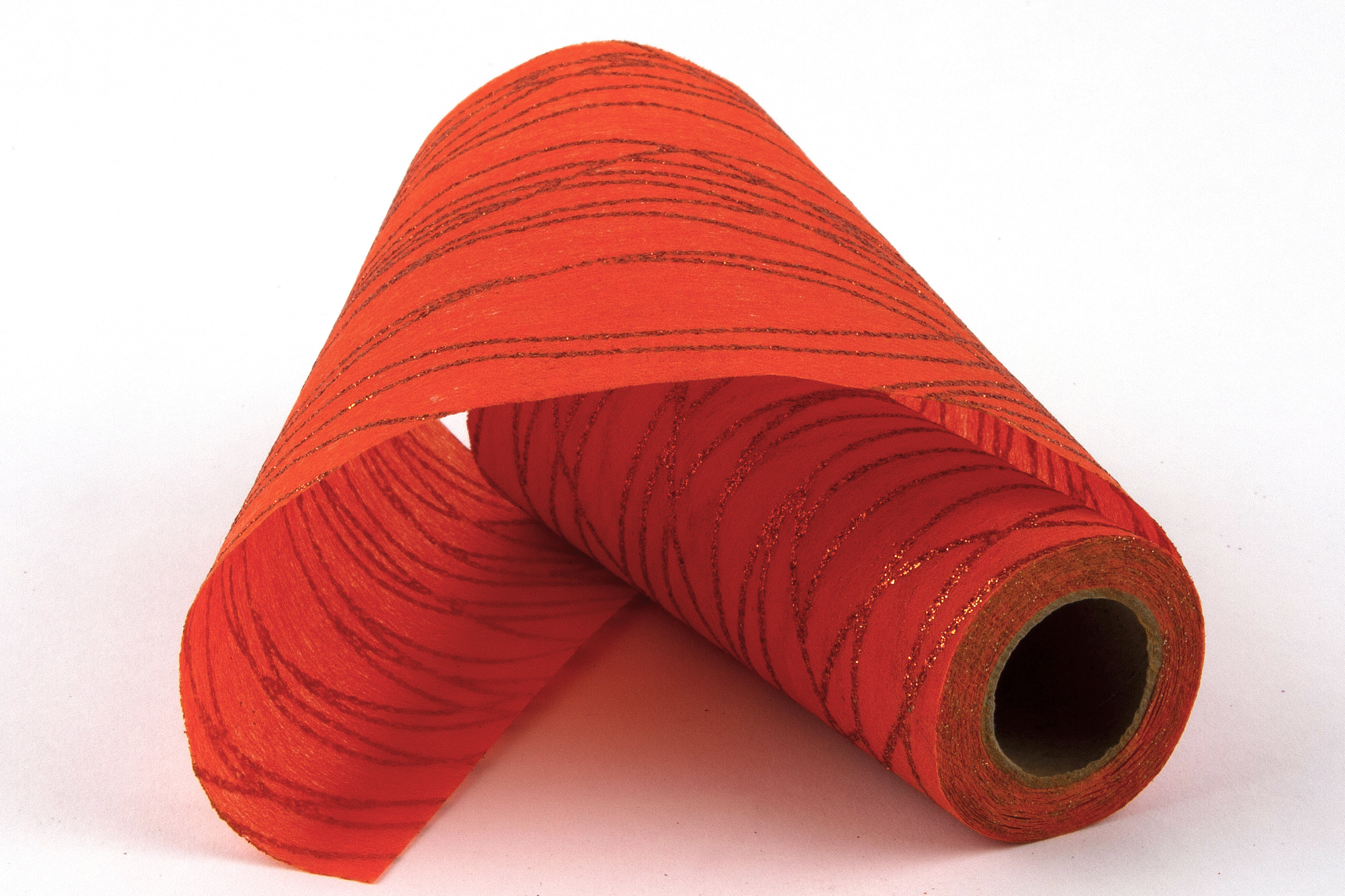 Oranžový 12,5 cm vlizelín s krásnou glitrovanou vlnkou na roli. Nejen k vánoční dekoraci a aranžmá. przeczytaj całość