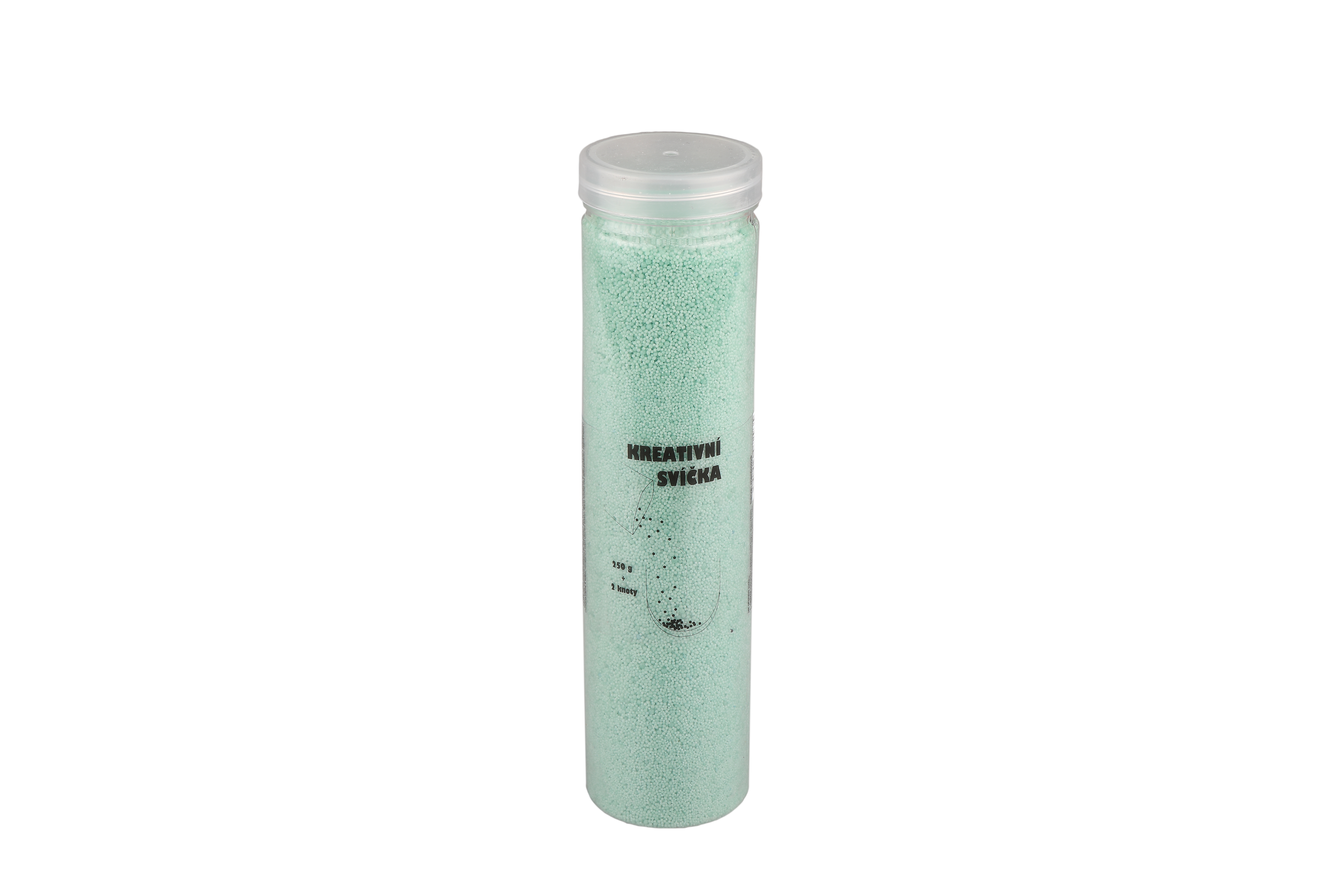 Voskový granulát mentolové barvy KERZENSAND pro tvorbu kreativních svíček. 250 g + 2 knoty příprava svíčky KERZENSAND: 1. naplňte vybranou nehořlavou nádobu voskovým granulátem 2. upravte knot na žádanou délku, délka knotu určuje dobu hoření voskového granulátu 3. knot o délce 4-5 cm...