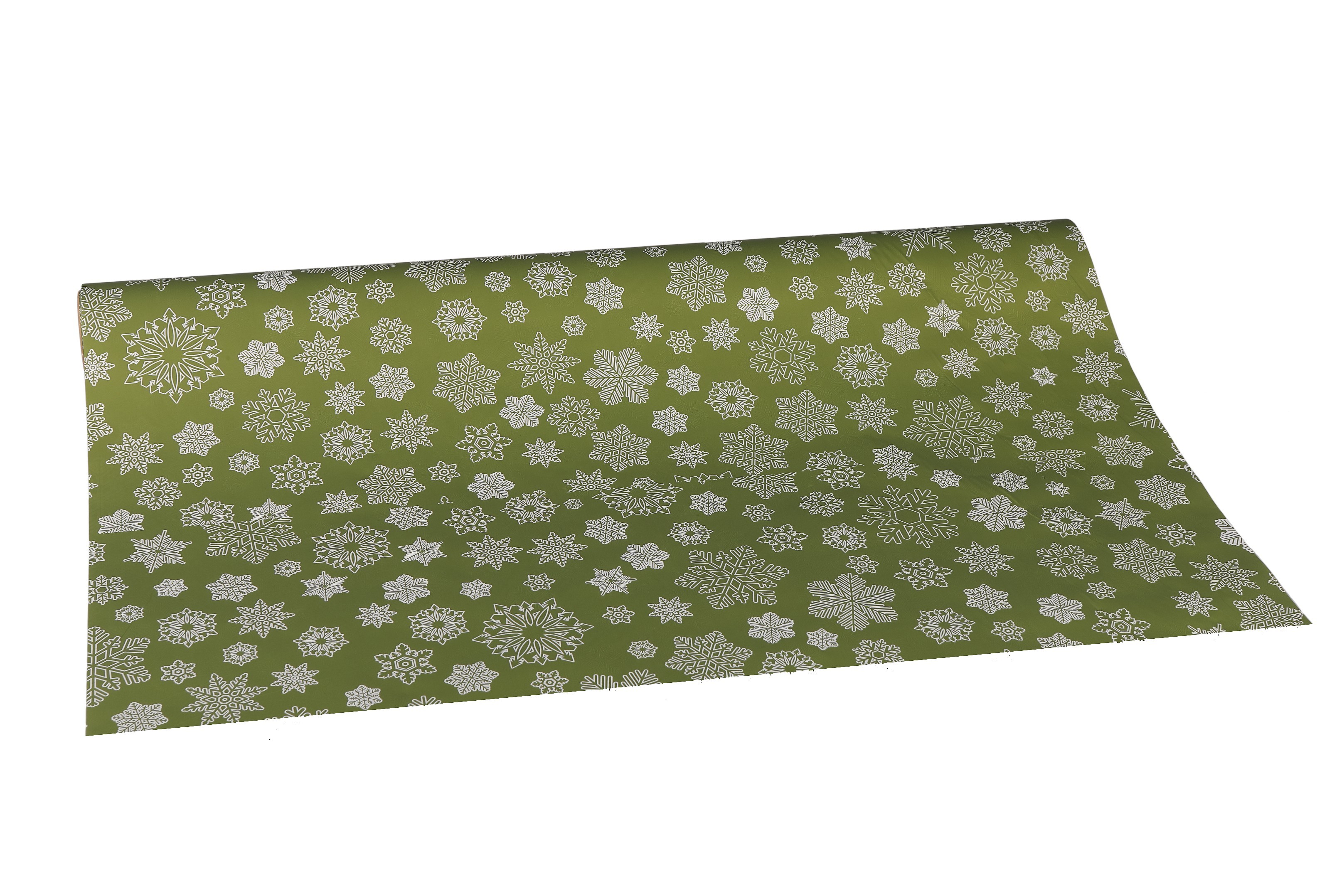 Vánoční fólie sněhové vločky zelená Floristická fólie s decentní tématikou sněhových vloček. Zelená fólie s návinem 9,1m a šíří 50cm. Sněhové vločky jsou stále oblíbeným vánočním motivem. Hodí se skvěle na vánoční aranžovaní a floristické aranžmá. Díky vkusnému vánočnímu vzoru dostane každá květina správný vánoční nádech. Fólie je motivem potištěná z jedné strany, druhá strana je jednobarevná.