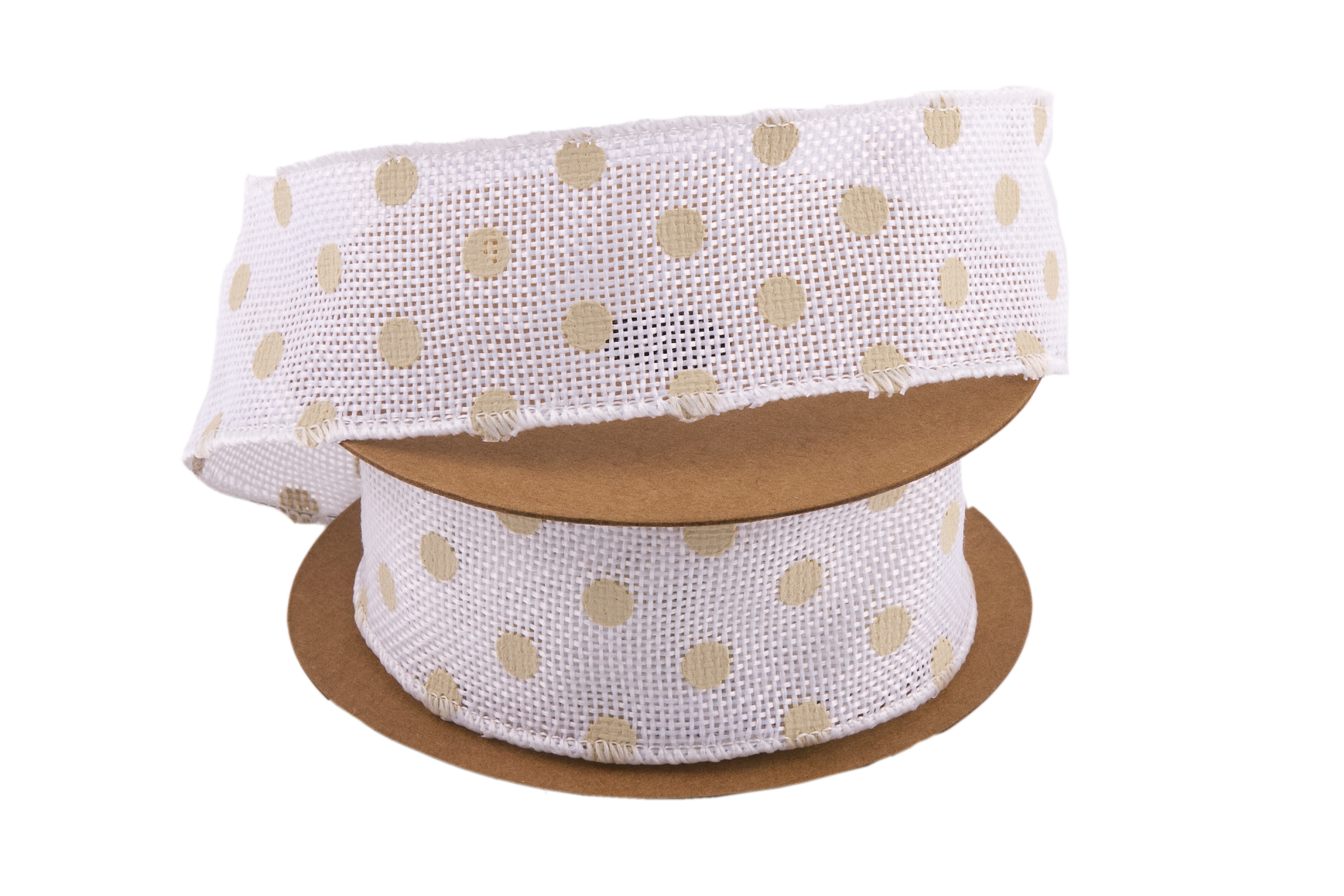 Jutová stuha s puntíkem 4cm x 6,4m 0 BÍLÁ
