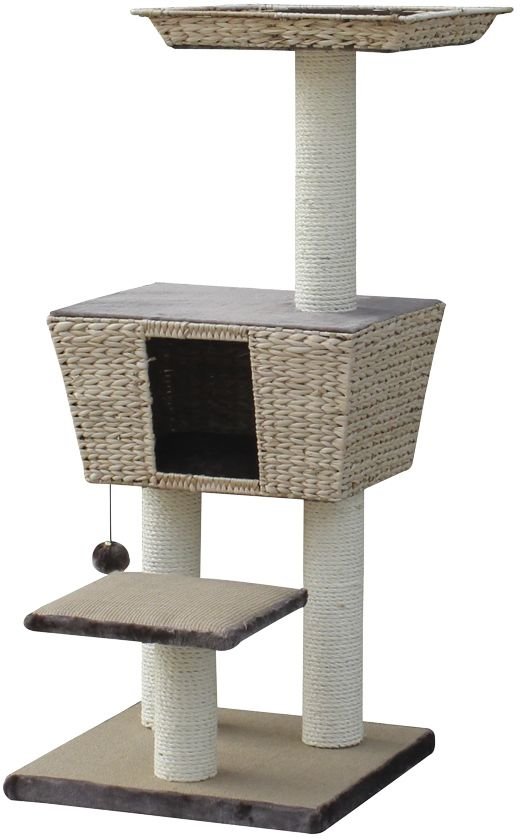 Přírodní škrábací strom z vodního hyacintu. Rozměr základny 48 x 48 x 4 cm Výška 114 cm Sisalové kmeny ø 9 cm Domeček 48 x 38 (40 x 30) x 25 cm Horní odpočívadlo 43 x 43 (35 x 35) x 5 cm Z různých možností k úkrytu a odpočinku si kočka může vybrat, kde se jí právě nejvíce líbí. Domeček z...