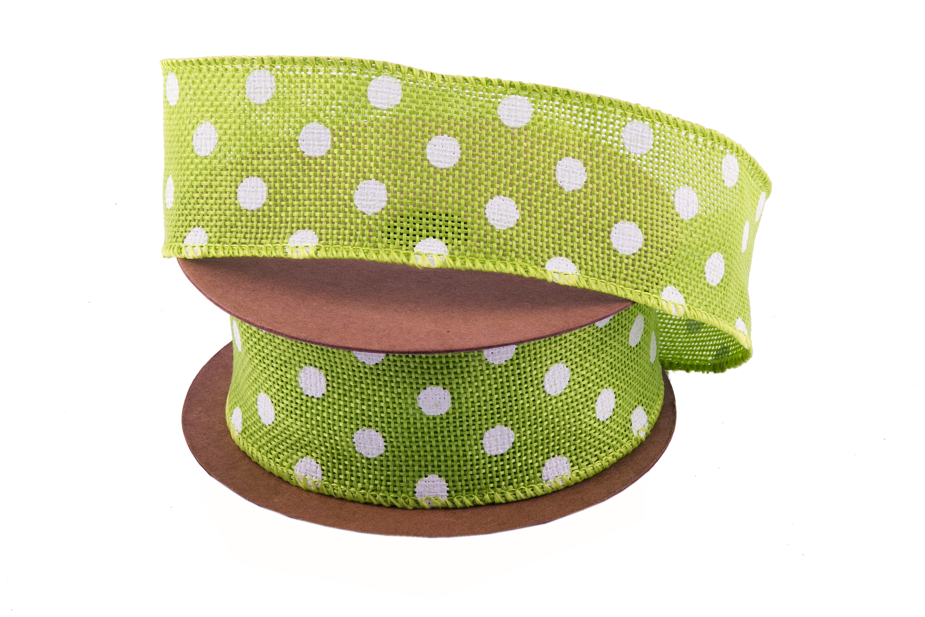 Jutová stuha s puntíkem 4cm x 6,4m 34 SV. ZELENÁ