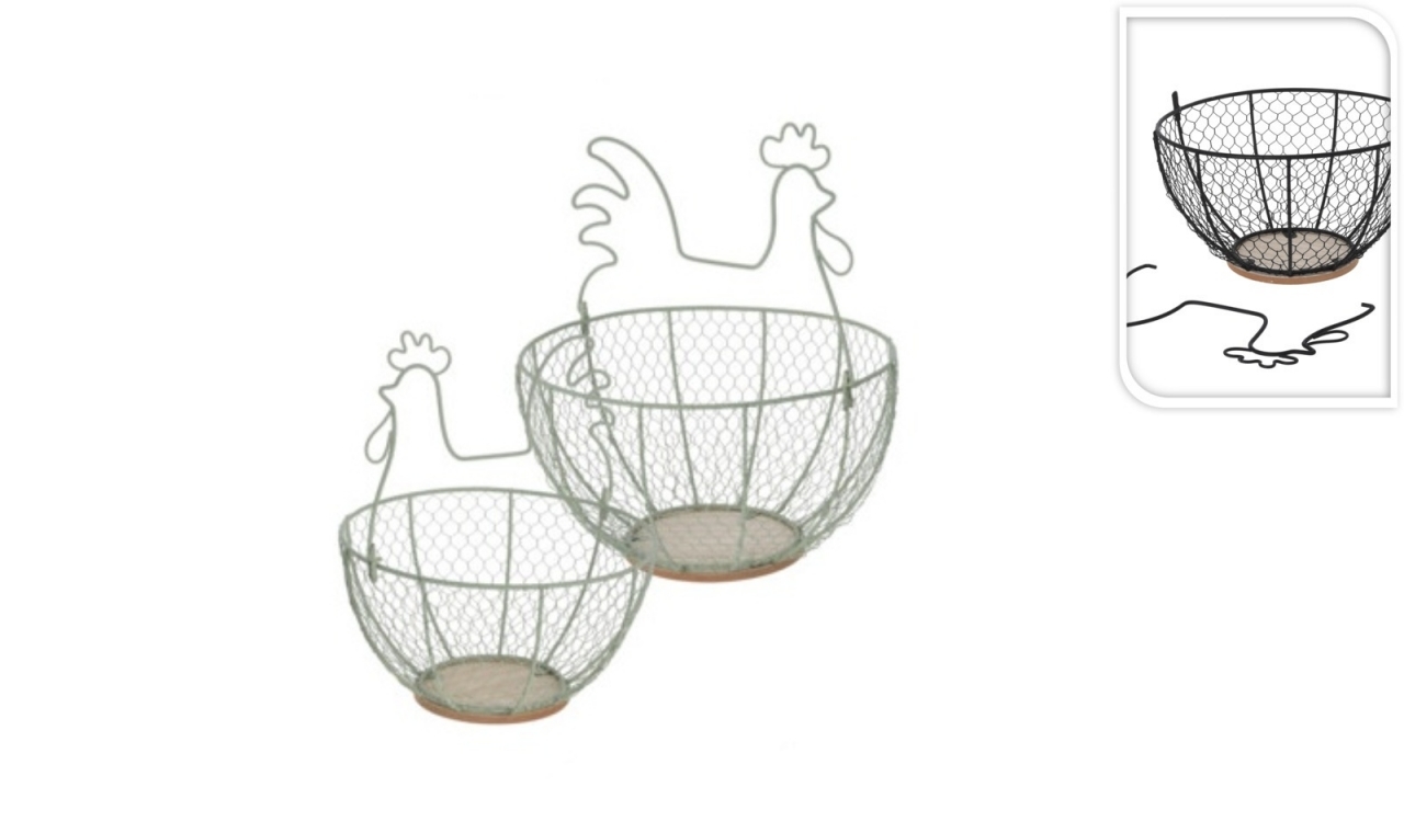 Drátěný koš kulatý Slepička, sada 2 ks, zelený