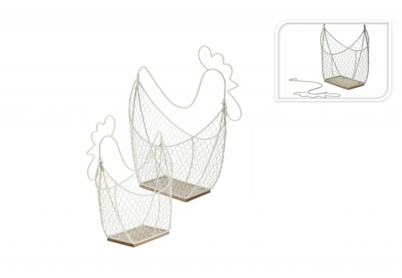 Sada 2 ks drátěných košíků ve tvaru slepičky s dřevěnou podložkou. Košík můžete použít během celého roku se slepičkou a nebo jednoduše siluetu slepičky odděláte.Materiál: kov, MDF deskaRozměry:33x14x30 cm27x11x25 cmhmotnost 436 g przeczytaj całość