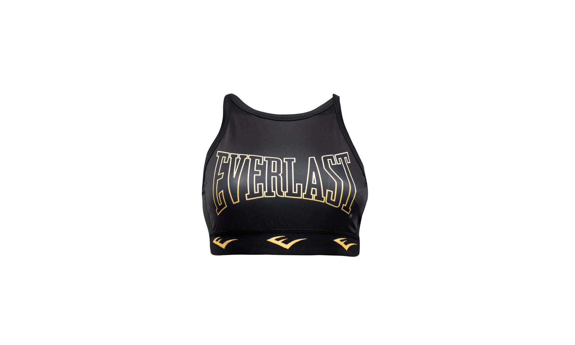 Stylová sportovní podprsenka z polyesterového materiálu DURAN BLACK/GOLD. Vhodná na sportování a trénink. przeczytaj całość