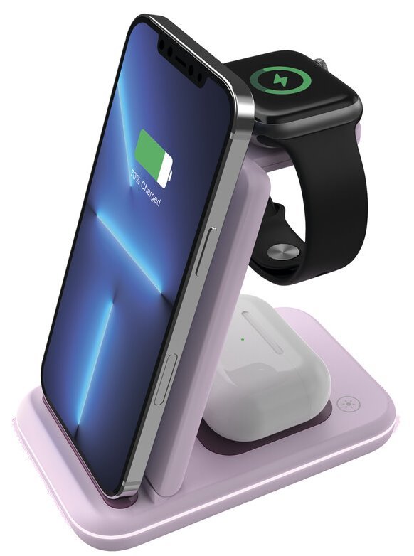 CANYON Bezdrátová nabíječka WS-304 IP, QC18W, 3v1, vstup 9V/2A, 12V/1.5A, výstup 15W/10W/7.5W/5W,Type C to USB-A, růžová