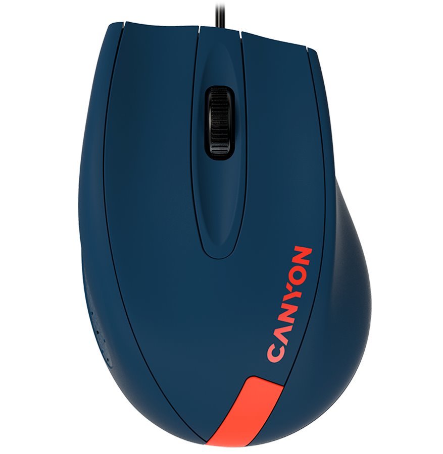 CANYON myš drátová M-11, 3 tlacítka, 1000dpi, pogumovaný povrch, modrá - cervené logo