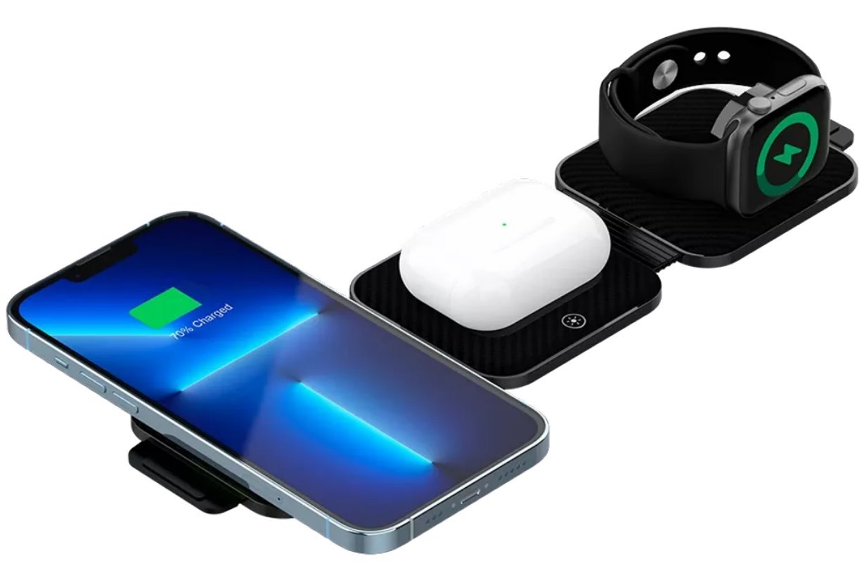 Skládací bezdrátová nabíjecí stanice 3 v 1 WS-305Skládací a kompaktní provedeníRychlé současné nabíjení až tří zařízeníMaximální nabíjecí výkon na jedno zařízení je 15 W, celkový výkon 20,5 WKompatibilní se standardem Qi, včetně zařízení, jako jsou Apple Watch, AirPods a další sluchátka, která...