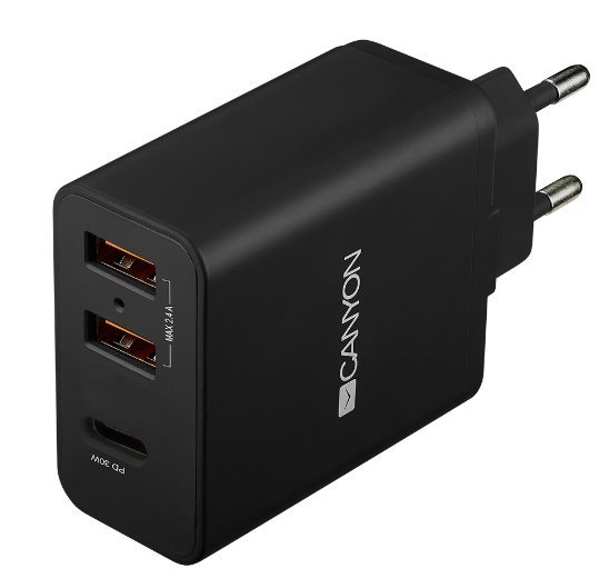 CANYON Nabíjčka do sítě H-08, Power delivery - 1x USB-C (Quick charge), 2xUSB A, černá