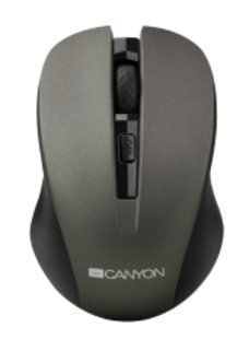 CANYON myš optická bezdrátová CMSW1, nastavitelné rozlišení 800/1000/1200 dpi, 4 tl, USB nano reciever, šedá