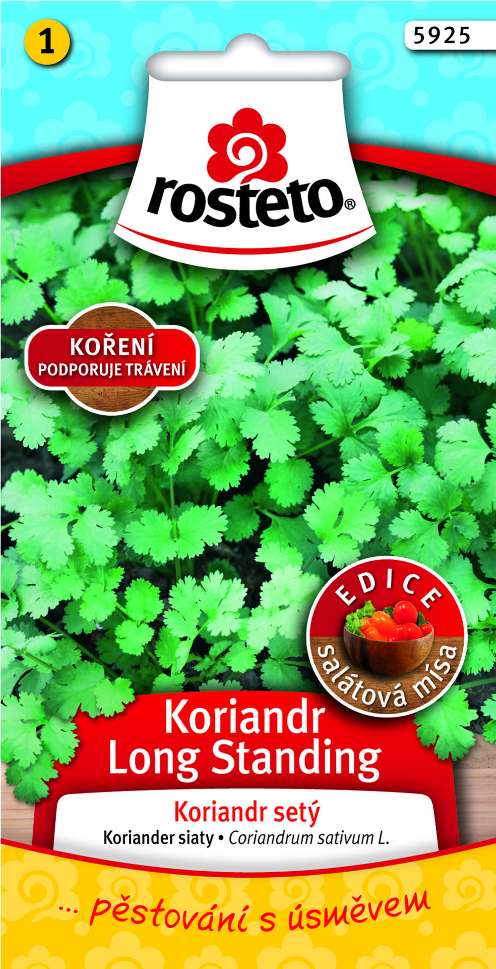 Coriandrum sativum L. / Kolendra siewnaOpis:Roślina jednoroczna o prostym, rozgałęzionym pędzie i naprzemianległych, głęboko pierzastych liściach. Niewymagająca w uprawie. Nasiona od dawna stosowane są jako przyprawa do mięs i sałatek, podobne zastosowanie mają także młode liście. Nasiona samodzielnie lub w mieszankach herbacianych działają pobudzająco na apetyt, wspomagają trawienie i przeciwko wzdęciom. W 1 g: 100 (1 g na m2) Bezpośredni siew: marzec - kwiecień