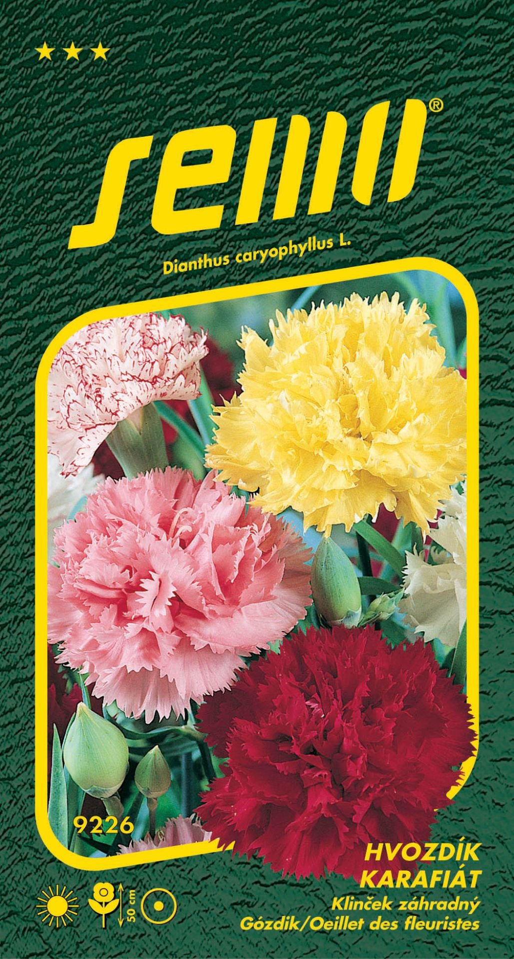 Dianthus caryophyllus L. / goździk ogrodowyOpis:Rozgałęziony, wzniesiony jednoroczny do nasadzeń rabatowych i do cięcia na kwiaty. W wazonie utrzymuje się 7-10 dni. Wymaga przepuszczalnej, żyznej gleby z dostatkiem wapnia i pełnego nasłonecznienia. Rośliny przeznaczone do cięcia wymagają podpór. Te tzw. goździki Chabauda mają długi okres wegetacji, siejemy je wcześnie - w lutym do marca. Wysiew: luty - marzec