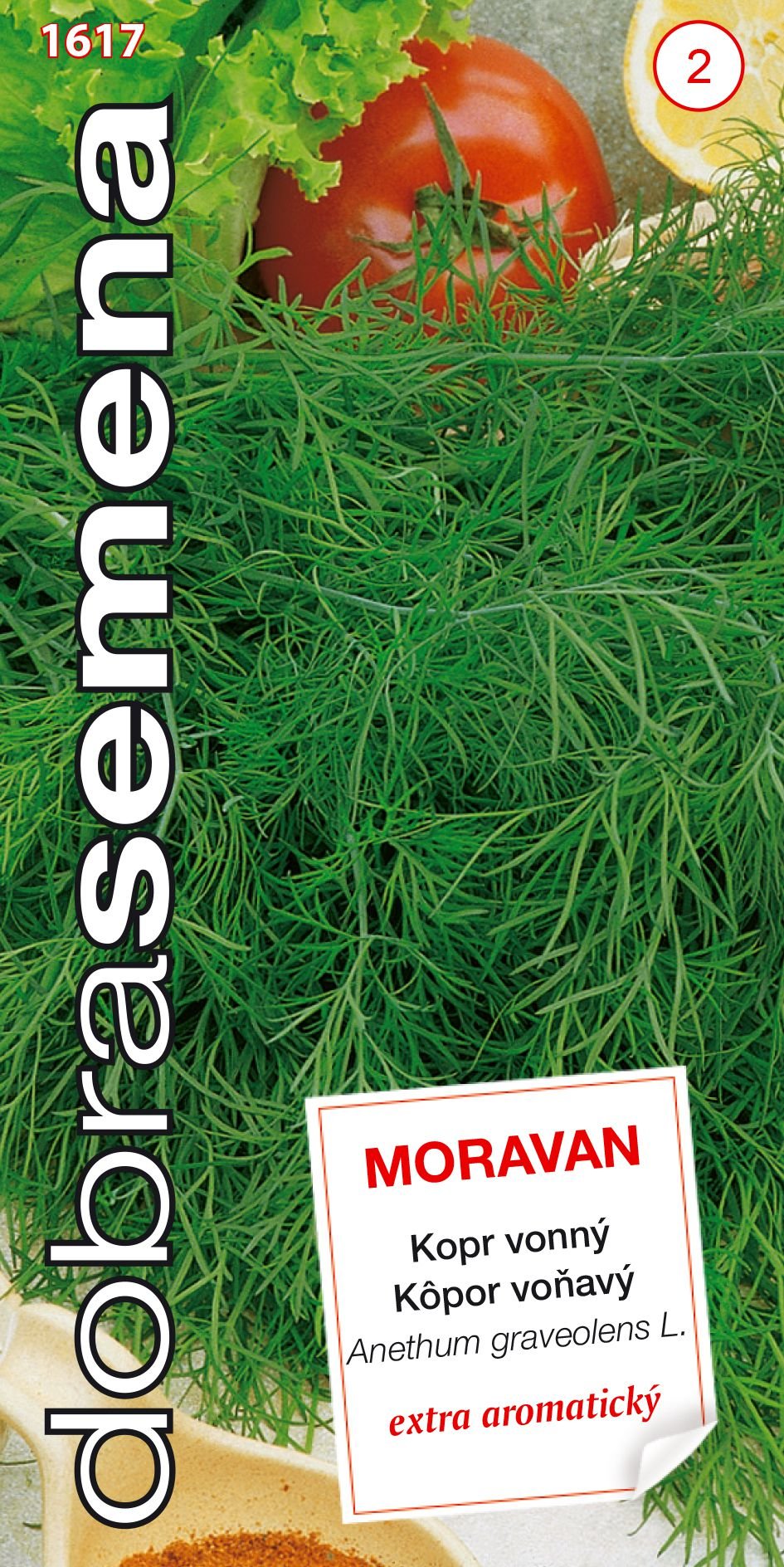 MORAVAN - aromatyczny, późno kwitnący koper. Liście są gęste, ciemne, srebrzysto-niebiesko-zielone. Ma wyraźną odporność na przedwczesne kwitnienie, co wydłuża czas zbioru. Jest to plonująca i niezawodna odmiana do kulinarnego wykorzystania, konserwowania oraz suszenia. Okres wegetacji wynosi 70 - 80 dni.