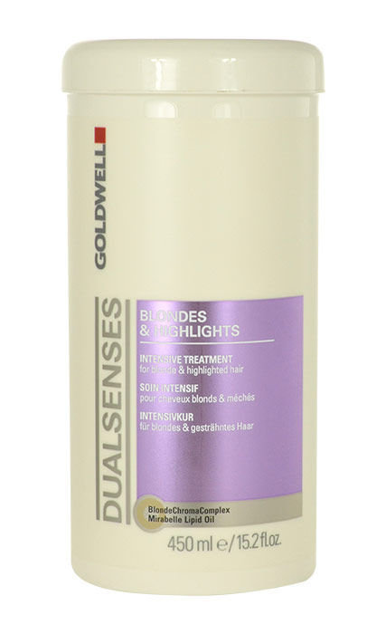 Vlasová kúra Goldwell Dualsenses Blondes Highlights Intensive Treatment. Vlasová kúra Goldwell Dualsenses Blondes Highlights Intensive Treatment pro blond a melírované vlasy. Hloubkově vlasy vyživuje a regeneruje. Bohaté složení pomáhá redukovat blednutí a zabraňuje vzniku nežádoucích odstínů....