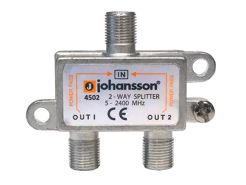 Rozbočovač SAT 2x Johansson 4502Kvalitní rozbočovač signálu určený pro satelitní i televizní příjem pracující v pásmu 5 - 2340 MHz. Provedení v poniklovaném odlitku s vynikajícím stíněním. Všechny výstupy jsou průchozí pro napájení (ochranné diody).Technické parametry počet výstupů 2...