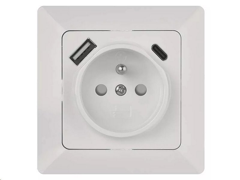 Już nigdy nie szukaj ładowarki! Dzięki temu gniazdku wyposażonemu w porty USB-A i USB-C wygodnie naładujesz swoje urządzenia bezpośrednio ze ściany, oszczędzając miejsce i czas.