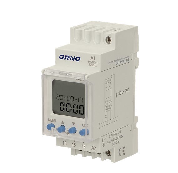 Elektroniczny programator czasowy na szynę DIN ORNO OR-PRE-433
